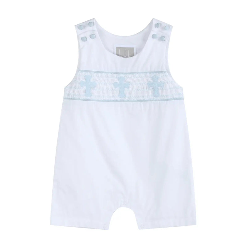 White and Blue Holy Crosses Smocked Overalls Jon Jon