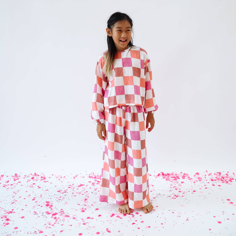 MAYA SET | 2 PIECE OUTFIT | PINK CHECKERED | GIRLS