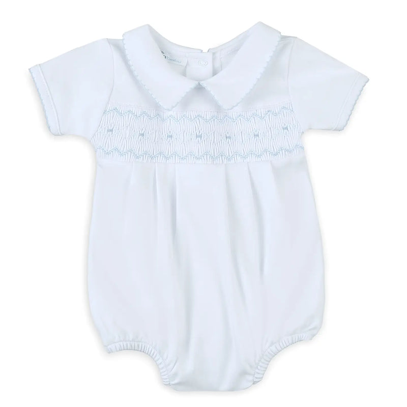 Santa Baby Print Ruffle Zip Footie - Light Blue