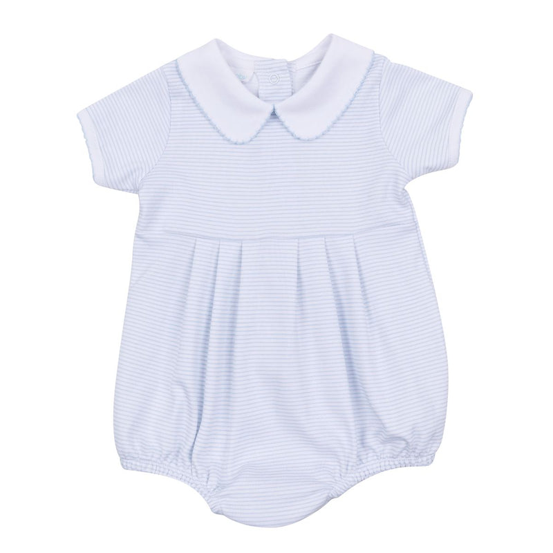 Mini Stripes Light Blue Smocked Collared Boy Footie