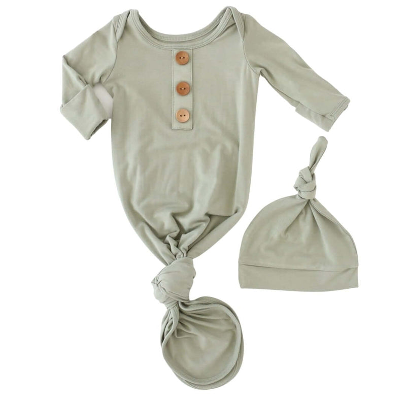 Solid Moss Bamboo Baby Knot Gown & Hat