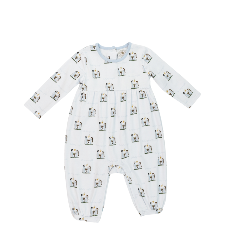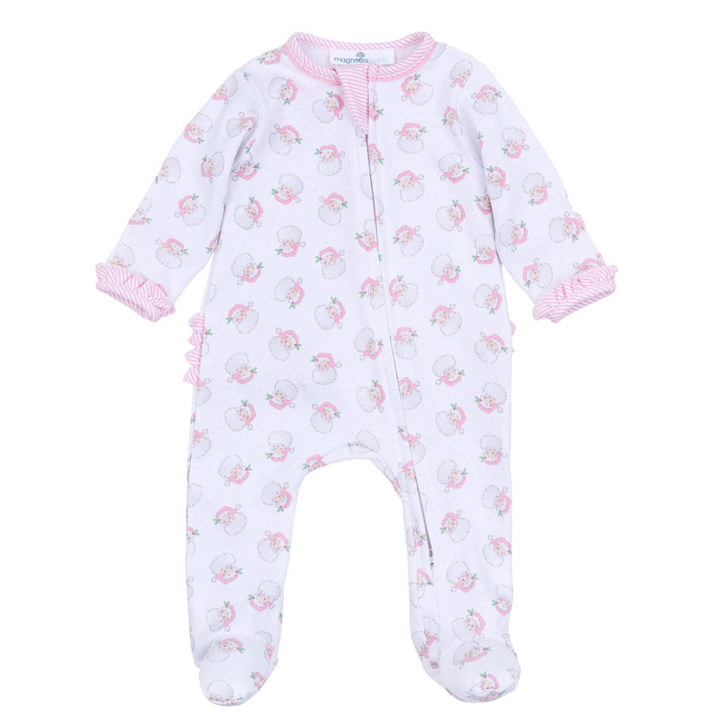 Santa Baby Print Ruffle Zip Footie - Light Blue