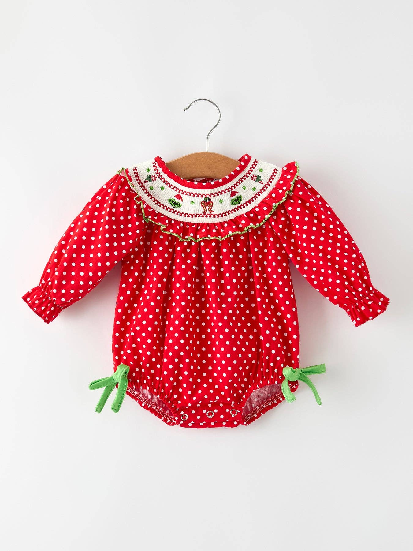Celebrate the season in style with this charming red holiday romper for baby girls. Featuring adorable embroidery, it adds a festive touch to your little one’s wardrobe. Crafted for comfort and easy dressing, this romper keeps your baby cozy while spreading Christmas cheer. Perfect for holiday photos and family gatherings, it’s a delightful way to make memories that last. Material:100% cotton