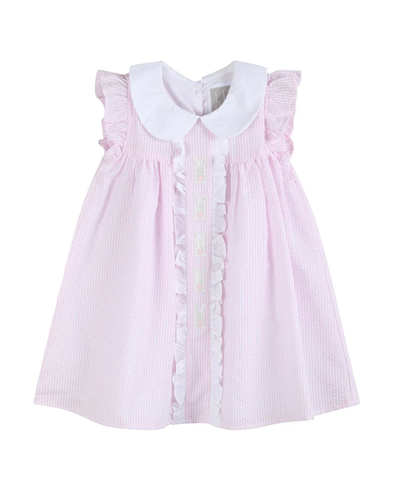 Pink Seersucker Easter Bunny Ruffle Dress