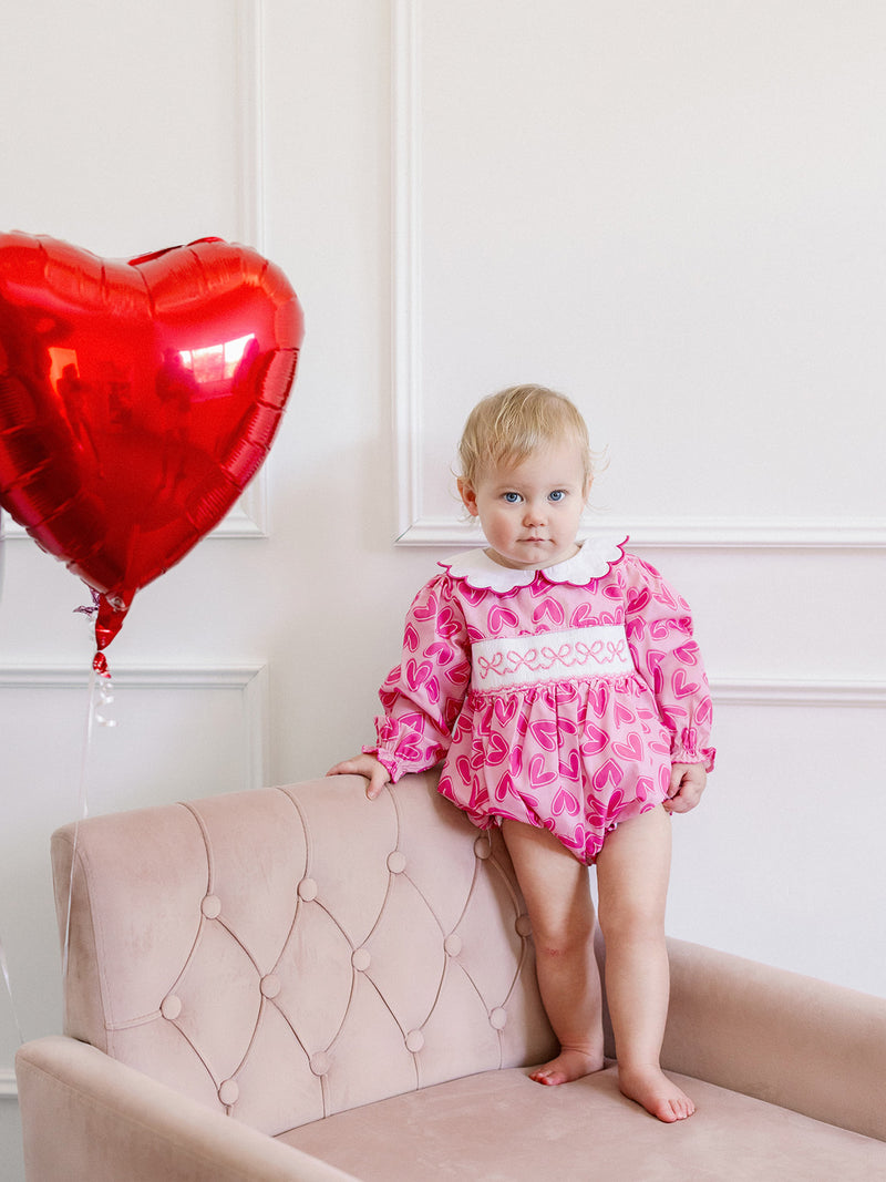 Pink Convo Hearts Zipper Ruffle Romper