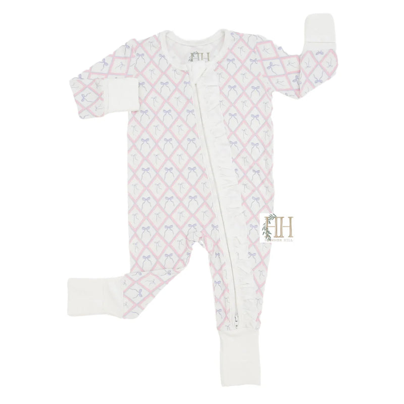 Girls Ribbons and Bows Double Zipper Romper