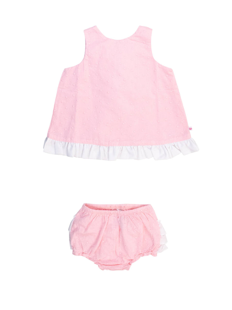 Pink & White Swiss Dot Swing Top & Bloomer Set