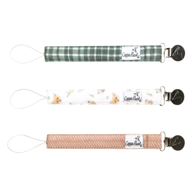 Offering the ultimate blend of fashion and function, our unique Binky Clip features a premium knit strap lined with absorbent fleece to help soak up drool. Simply attach baby's pacifier or teether to one end, then fasten the clip to clothing, blankets or baby gear. Oh, and by the way our set includes three Binky Clips to keep with you wherever you go - no more floor drops or pacifier pick-ups!