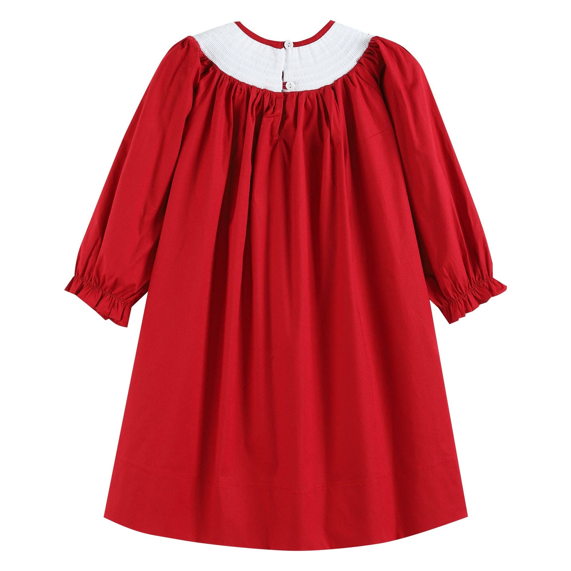Red Poplin Santa Long Sleeve Smocked Bishop Dress
