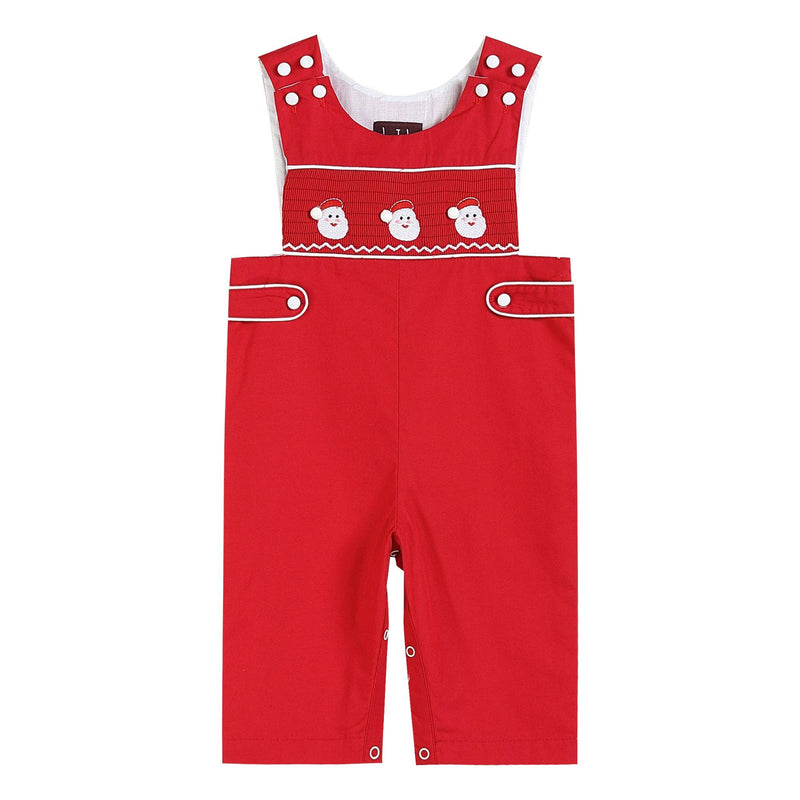 Red Poplin Santa Long Sleeve Smocked Bishop Dress
